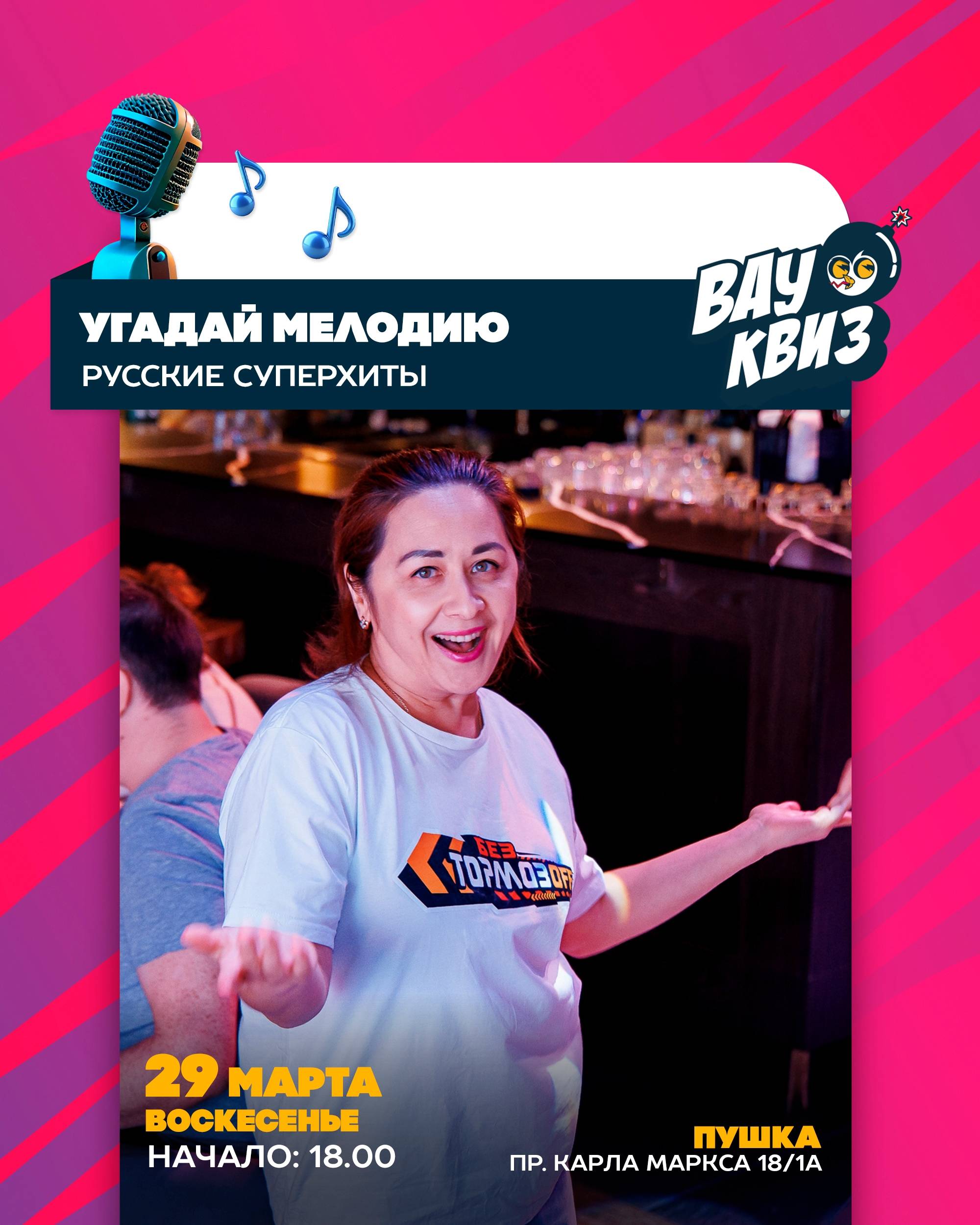 🎶29 марта (Воскресенье). Начало: 18:00 – Угадай мелодию. Русские суперхиты. Играем в «Пушка» (пр. Карла Маркса 18/1а).