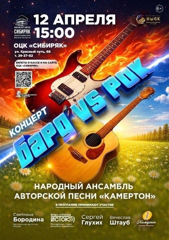 🎸Приготовьтесь к уникальному культурному событию, которое разрушит жанровые стереотипы. На одной сцене встретятся два мощных пласта музыкальной культуры: доверительная искренность авторской песни и неудержимая энергия рока. Программа «Бард vs Рок» —...