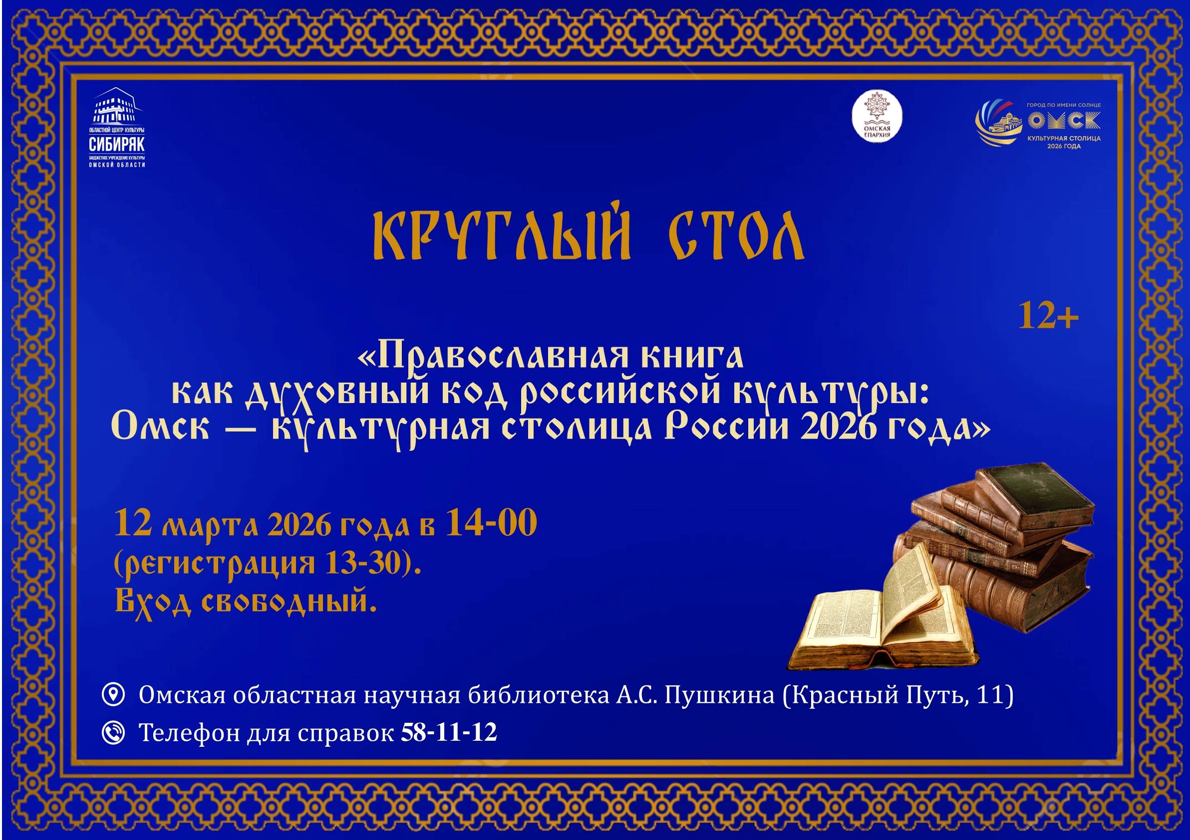 ✨Областной центр культуры «Сибиряк» совместно и отделом религиозного образования и катехизации Омской епархии Русской Православной Церкви приглашают 12 марта в библиотеку им. А.С. Пушкина, где состоится круглый стол «Православная книга как духовный код российской культуры: Омск — культурная столица России 2026 года», посвященный Дню православной книги....