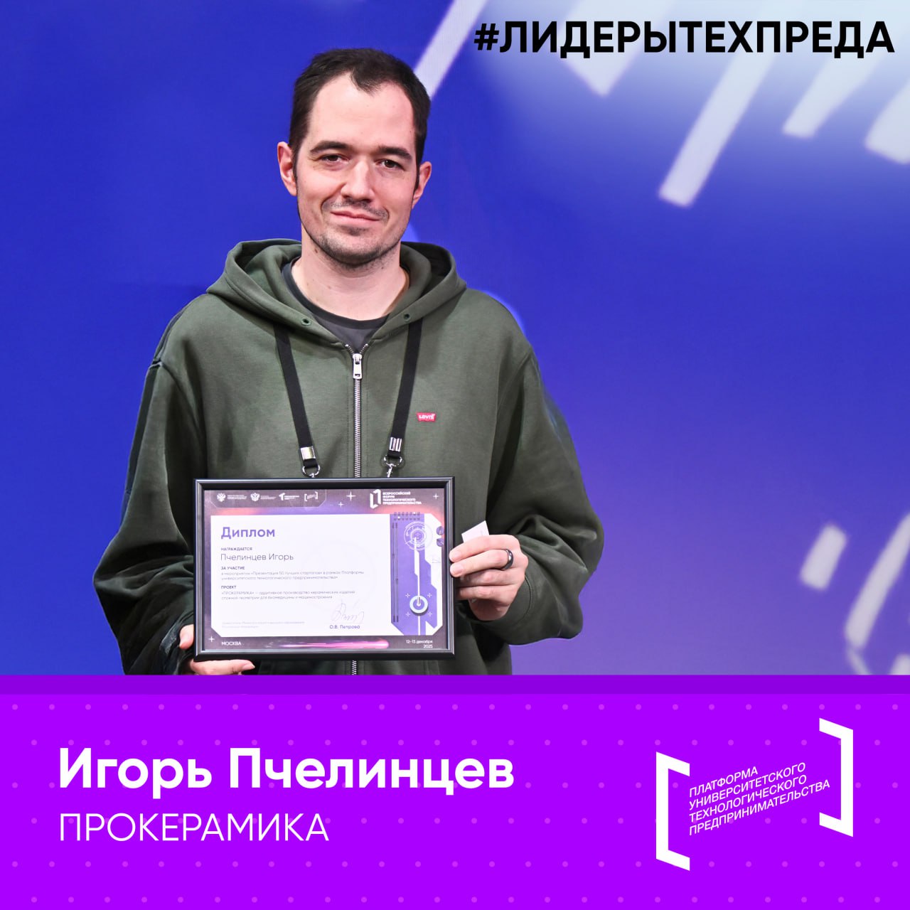 🏆 Продолжаем нашу рубрику #ЛидерыТехПреда! Наш герой сегодня — Игорь Пчелинцев, выпускник Сколковского института науки и технологий, участник ТОП-50 рейтинга ТОП-1000 университетских стартапов страны, основатель стартапа «Прокерамика».