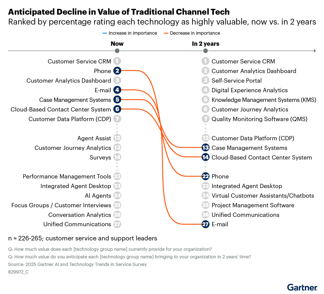 Именно такой вывод делают аналитики Gartner. Статья меня немного меня рассмешила, сейчас поймёте почему. Ключевые выводы: — Онлайн-чат и порталы самообслуживания становятся основными каналами. — Системы управления знаниями закрепляют позиции в топе.