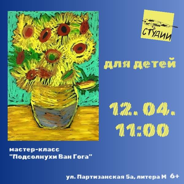 В детских студиях музея пройдет занятие, вдохновленное серией картин Винсента Ван Гога «Подсолнухи». Участники узнают о творчестве художника, научатся работать с пастелью и создадут свою версию шедевра под руководством педагога Натальи Масловой.