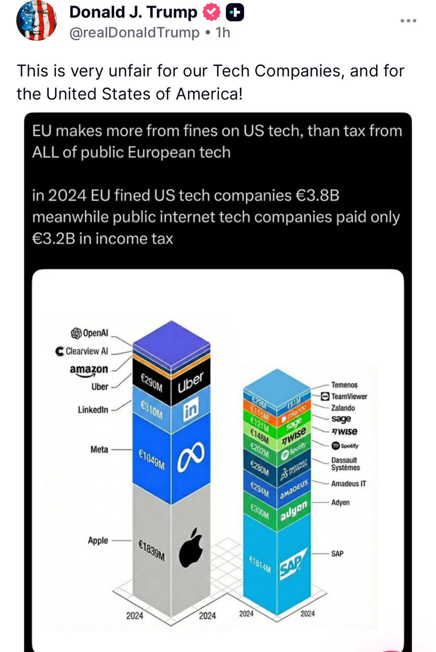 Штрафы на американские Big Tech компании принесли в бюджет ЕС больше, чем налоги с собственных IT-компаний. Напрашивается аналогия с романом Айн Рэнд "Атлант расправил плечи". Как бы не дошло до "стачки разума".