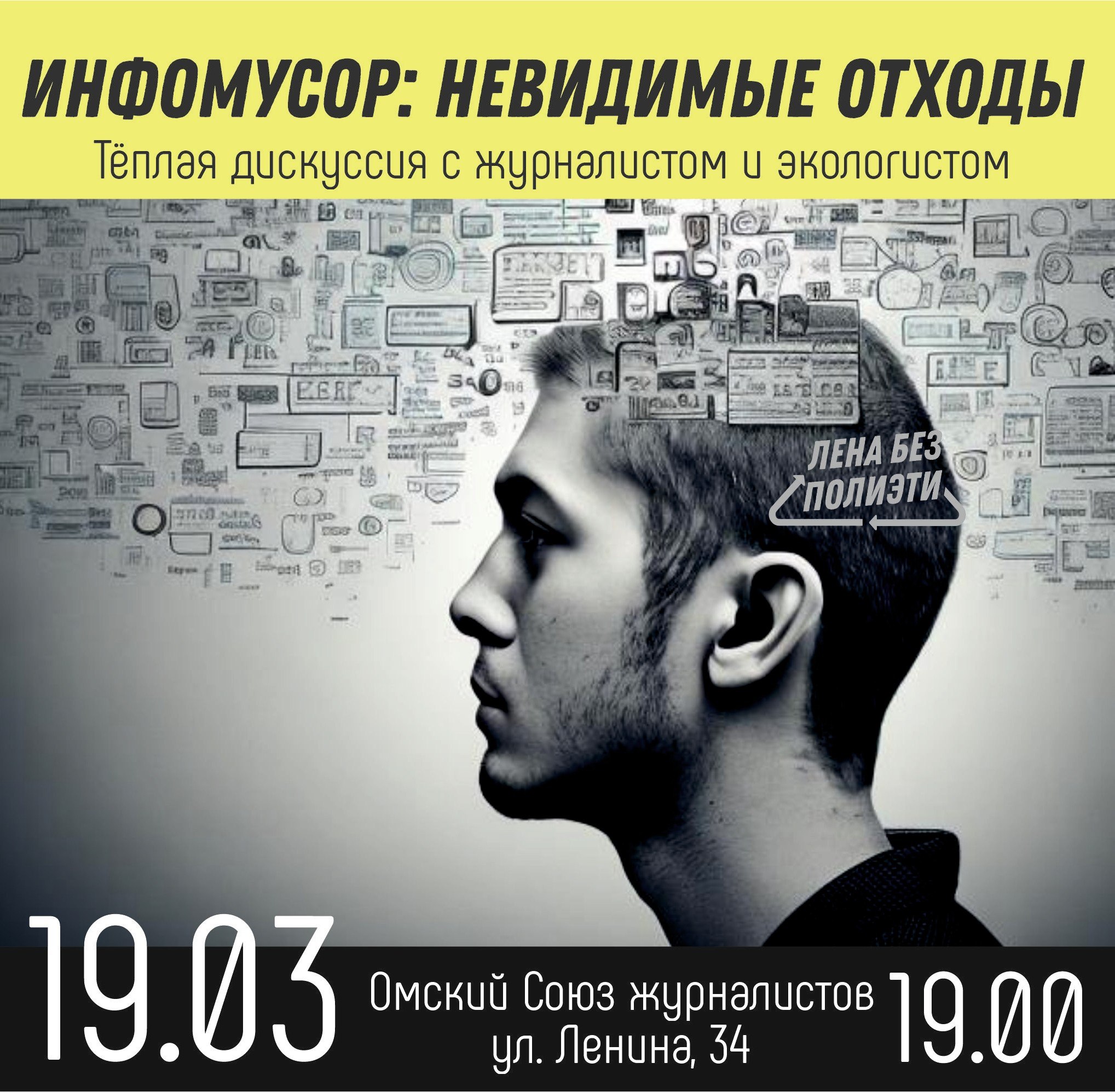 19 марта на эковстрече из цикла "Лена без полиэтилена" обсудим тему, которая касается каждого: "Инфомусор: невидимые отходы".