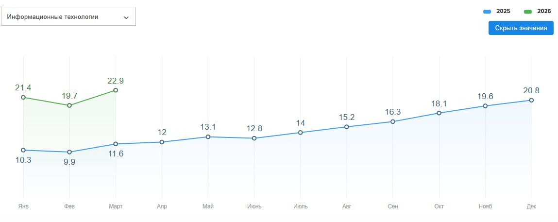 По итогам прошлого года задавались вопросом, пробьем ли мы индекс в 25 резюме на вакансию в IT. Спойлер: мы уже в миллиметре от этой цифры.