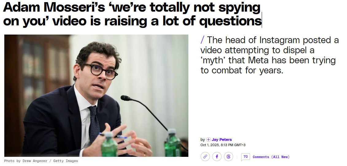 Маленькая деталь, сразу после публикации видео, управляющая компания Meta** объявила, что будет использовать пользовательские диалоги с ИИ для показа персонализированной рекламы. Пу-пу-пу...