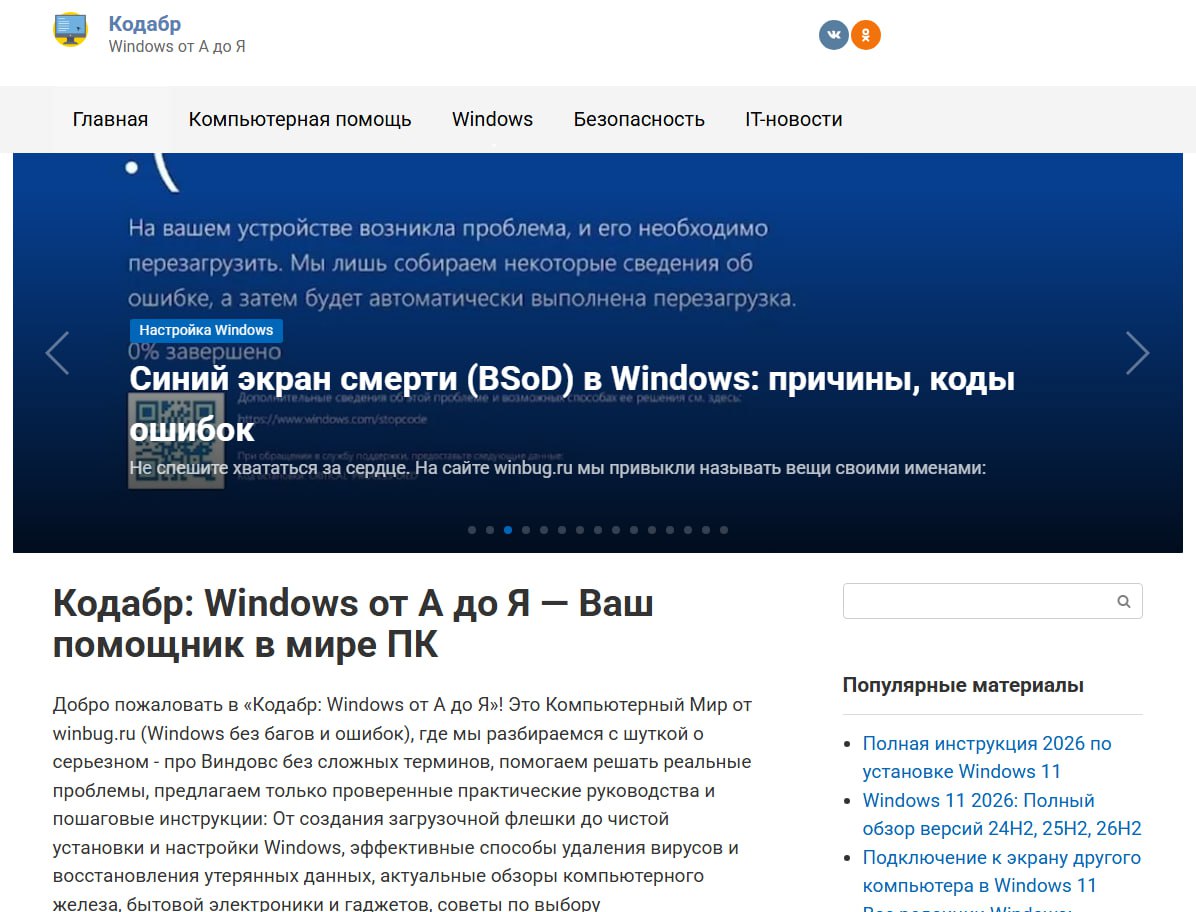 Компьютерный Мир от winbug.ru (Windows без багов и ошибок), где разбираются с шуткой о серьезном - про Виндовс без сложных терминов, помогают решать реальные проблемы.