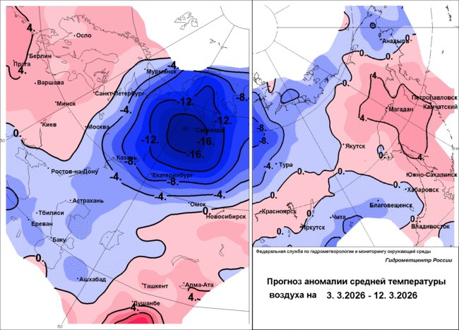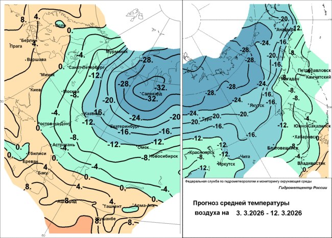 Именно по величине аномалии Ямал окажется абсолютным лидером: средняя температура составит около –32 °C, что на фоне и без того суровой местной нормы — исключительное явление. Для сравнения, в Оймяконе, который традиционно считается «полюсом холода», средняя температура ожидается лишь около –20 °C.